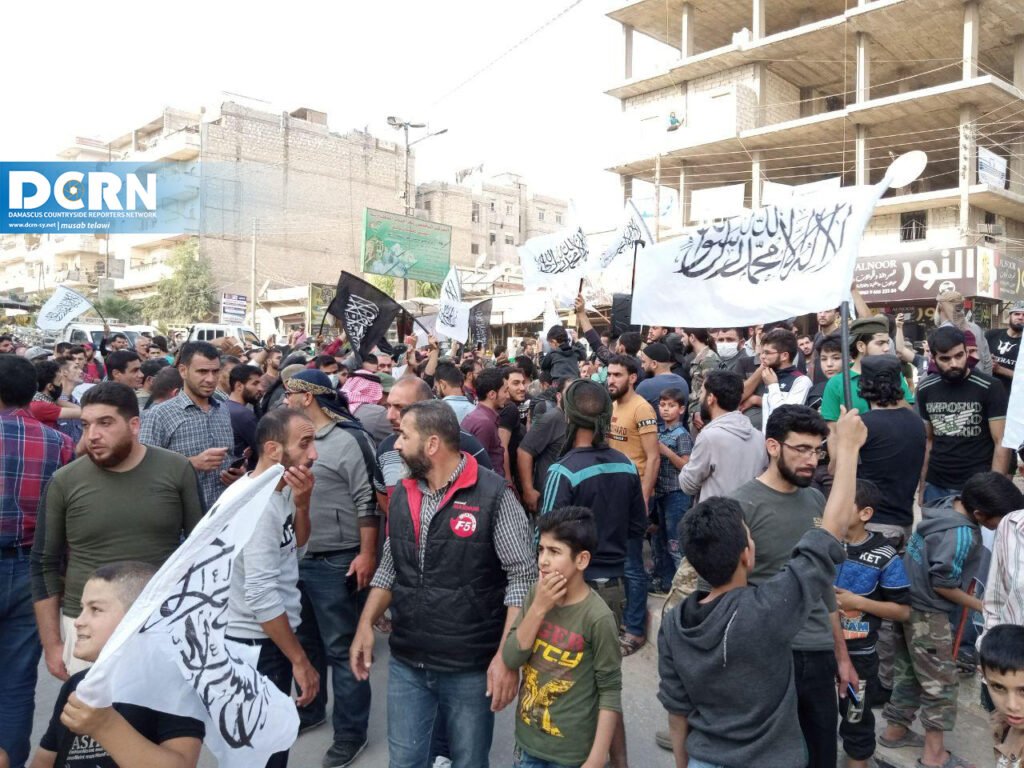 مظاهرات في الشمال السوري المحرر تستنكر وتندد بالحملة الفرنسية ضد الإسلام والمسلمين