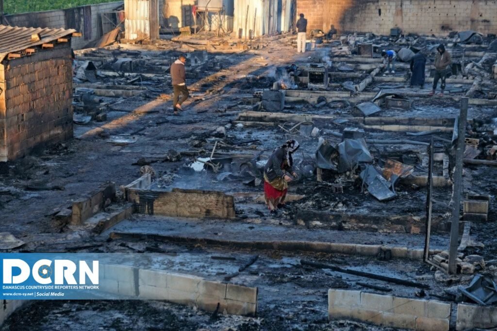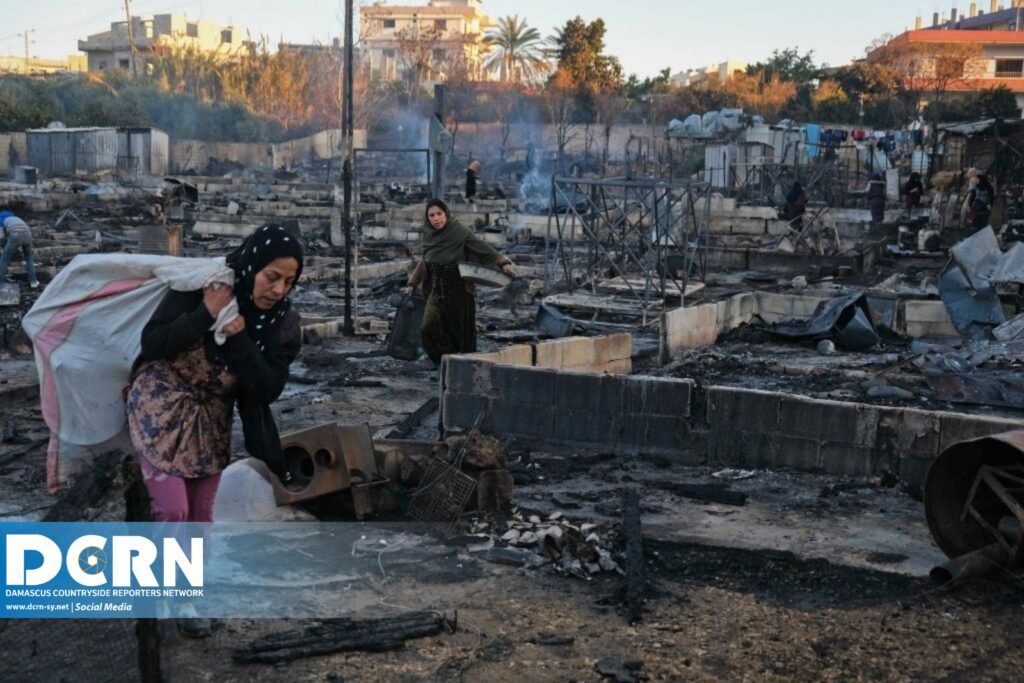 تداولت صفحات التواصل الإجتماعي صوراً لمخيم المنية عكار في طرابلس اللبنانية تظهر دمار المخيم بشكل كامل نتيجة الحريق الذي افتعله شبان لبنانيون في المنطقة، وفي حديث خاص لشبكة مراسلي ريف دمشق أكد شاهد عيان أنَّ عدة شبان من “بلطجية” المنطقة قاموا بالدخول إلى محل أحد الباعة السوريين وطلبوا منه الإغلاق بحجة أن الوقت متأخر، لكنه رفض لعدم وجود سبب ولا سيما أنه مصدر رزقه الوحيد ولازال الوقت باكراً، وأضاف المصدر أنه دار خلاف بسيط بينهم ليقوم أحدهم بالخروج وإطلاق عدة رصاصات في الجو و يتغيبوا بعض الوقت ليعودوا بشكل أرعن و يقوموا بحرق خيم صاحب البقالة الذي يملك ثلاث خيم، لكن لقرب الخيم من بعضها امتد الحريق و أصبح من الصعب السيطرة عليه وإطفائه ما أدى إلى إحراق كامل المخيم دون أي تدخل من فرق الإطفاء أو الدفاع المدني اللبناني، وأضاف المصدر أن الشبان لا يمكنهم القيام بهذا الفعل دون وجود غطاء سياسي لجريمتهم مشيراً إلى الأحزاب الموالية لنظام الأسد، خاصةً أنهم لم يُلاحقوا ولم يتم القبض عليهم إلا بعد عصر اليوم بعد أن تفاقمت الأزمة و تصدرت صفحات الأخبار الأولى، حيث أكد روايته الناشط الحقوقي هلال شاكوش بقوله: “الموضوع ليس إشكالاً بين سوريين ولبنانيين من المنية الموضوع هو لعبة من مخابرات الأسد شارك بها لبنانيون من المنية و سوريون من المخيم بغية تهجير السوريين وإحراق مسكنهم لإجبارهم على العودة لحضن النظام و تجنيد أبنائهم في الجيش المدعي ل”لمقاومة”.