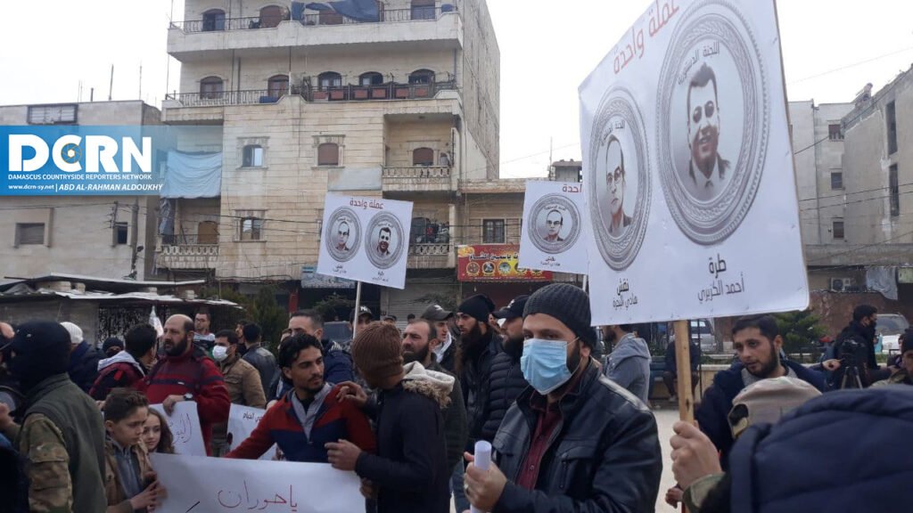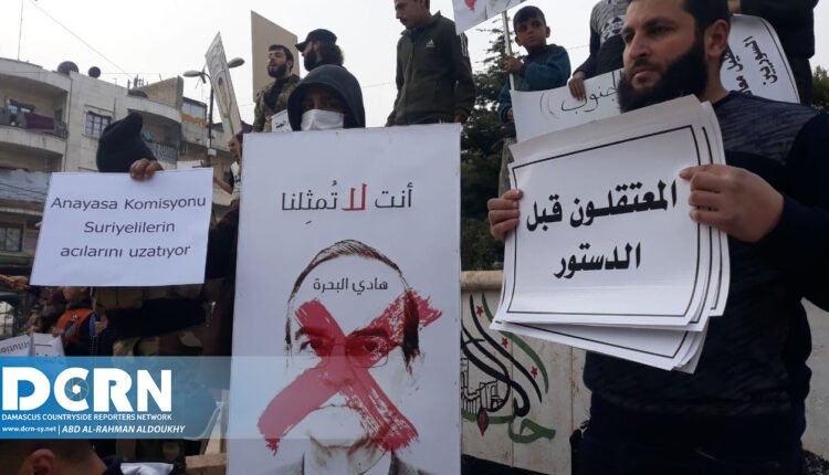 نفَّذ عدد من الناشطين السوريين شمالي سوريا وقفة احتجاجية طالبت بإسقاط الشرعية عن اللجنة الدستورية برئاسة “هادي البحرة” وذلك في خضم انعقاد الجولة الخامسة للّجنة الدستورية في جنيف.