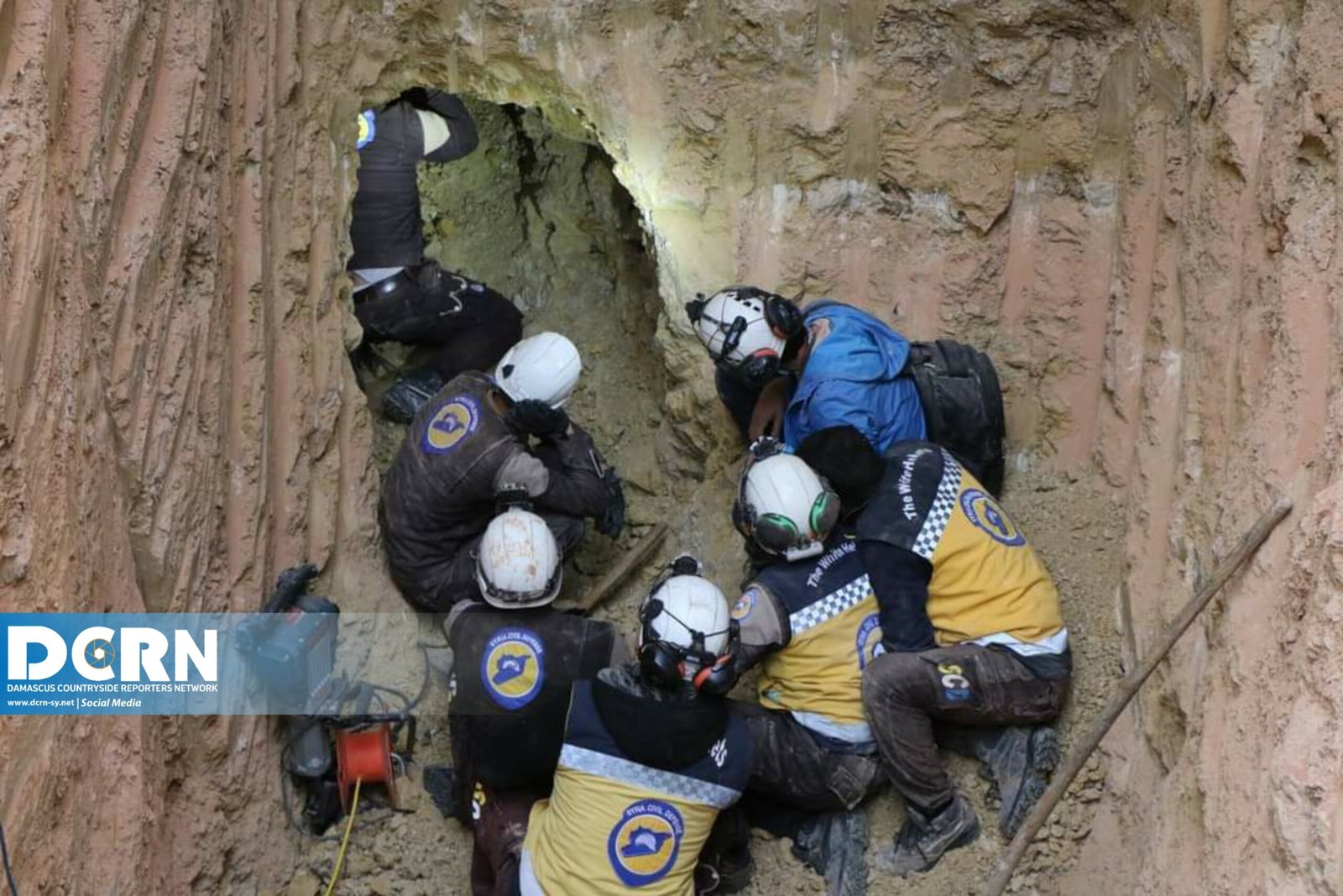 أعلنت فرق الدفاع المدني عن وفاة الطفل “حسن خضر الزعلان” ذو العشرة أعوام الذي سقط في البئر ببلدة كفر روحين في ارمناز بريف إدلب، بعد مرور قرابة 48 ساعة من الحفر بالآليات الثقيلة والخفر اليدوي للتمكن من انقاذ حياته.