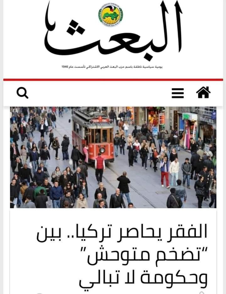 جريدة البعث: “الأتراك تحت خط الفقر، وسوريا الأسد بألف خير”!!!