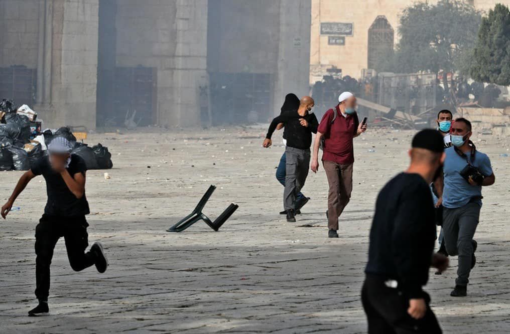 هذا فيما استمرت المواجهات العنيفة بين المرابطين الفلسطينيين وشرطة الاحتلال المدعومة بمستوطنين ومتطرفين يهود، حيث بلغت حصيلة الجرحى الفلسطينيين أكثر من ٥٢٠ جريح بحسب الهلال الأحمر الفلسطيني، فقد استعملت شرطة الاحتلال الرصاص الحي والمطاطي وقنابل مسيلة للدموع وأخرى متفجرة، إضافة إلى اعتقال المئات من المعتصمين في باحة الأقصى بينهم نساء وفتيات، إذ أظهرت صور تداولها ناشطون قيام العديد من المعتقلين بالتبسم رغم تكبيلهم بالقيود وسوقهم لمراكز اعتقال مجهولة المصير.