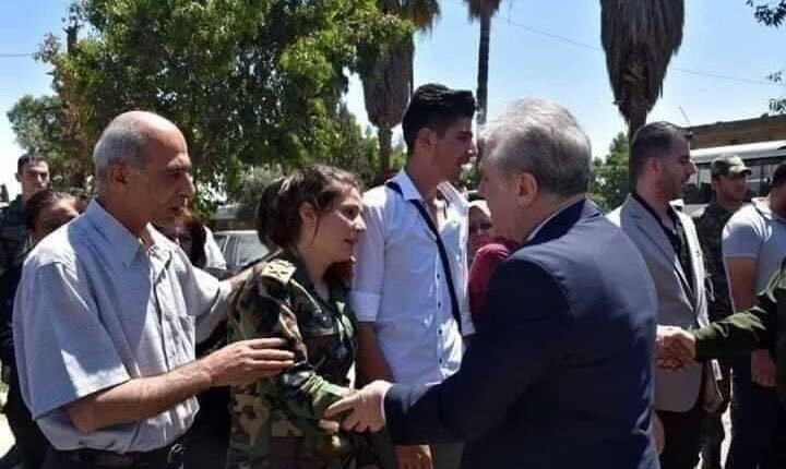 تداولت عدد من الصفحات الموالية على موقع فيس بوك صوراً لزوجة أحد الجنود في ميليشيات الأسد برتبة ملازم ويدعى “يزن الفاحلي” وهي تستقبل المعزين بمقتله مرتدية بزته العسكرية، حيث قتل زوجها قبل عدة أيام بكمين مسلح نفذه مجهولون على جبهة البادية السورية، وبحسب المعلومات أنه مضى على زواجها منه أقل من أسبوع.