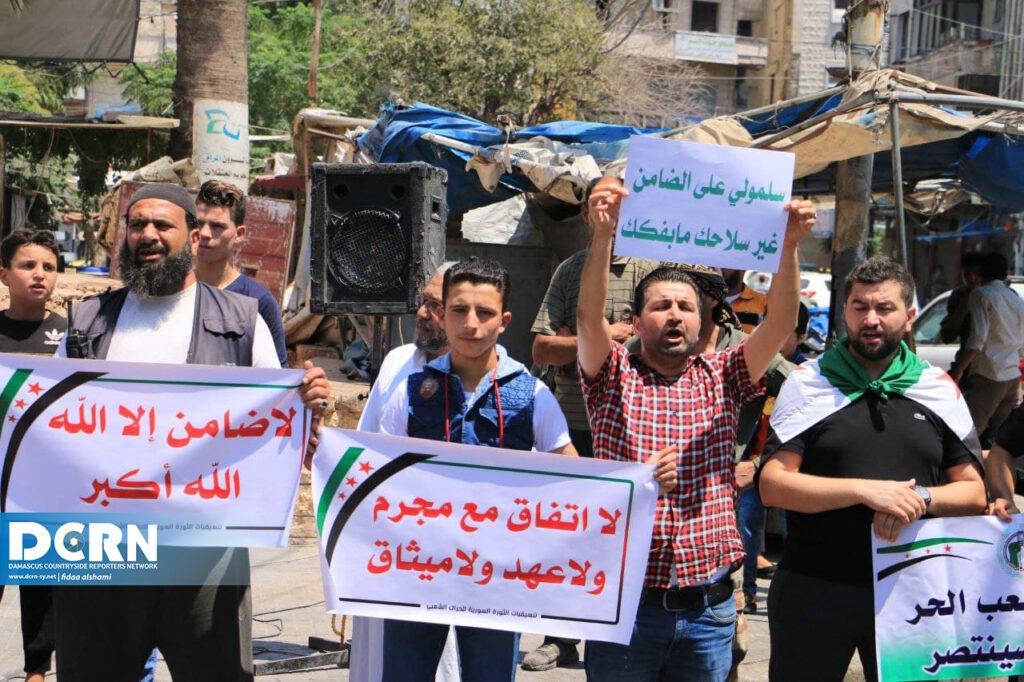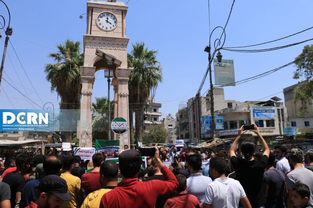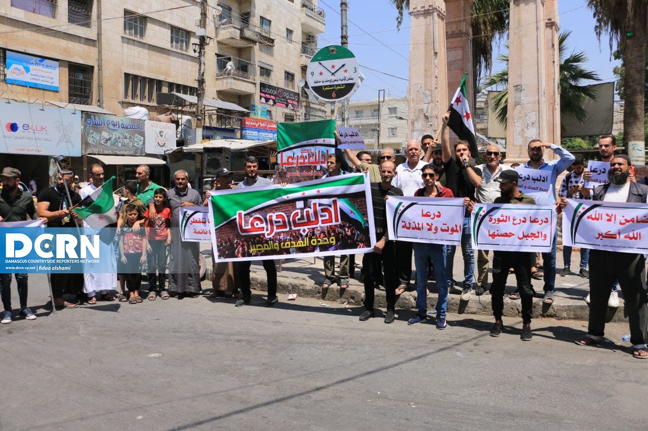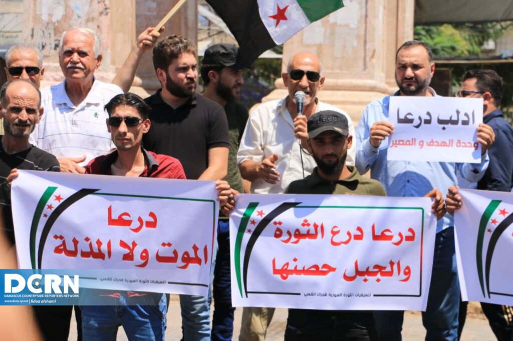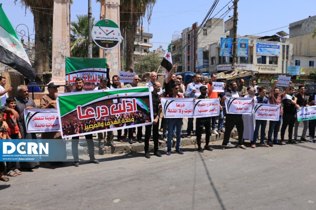 خرجت يوم أمس مظاهرات في عموم الشمال السوري ومنها مدينة ادلب، حيث نادت لنصرة درعا والوقوف إلى جانبها ولوحدة الهدف والمصير، وعدم الثقة بوعود النظام واتفاقياته الكاذبة، وجددت المطالبة بإسقاط النظام السوري.