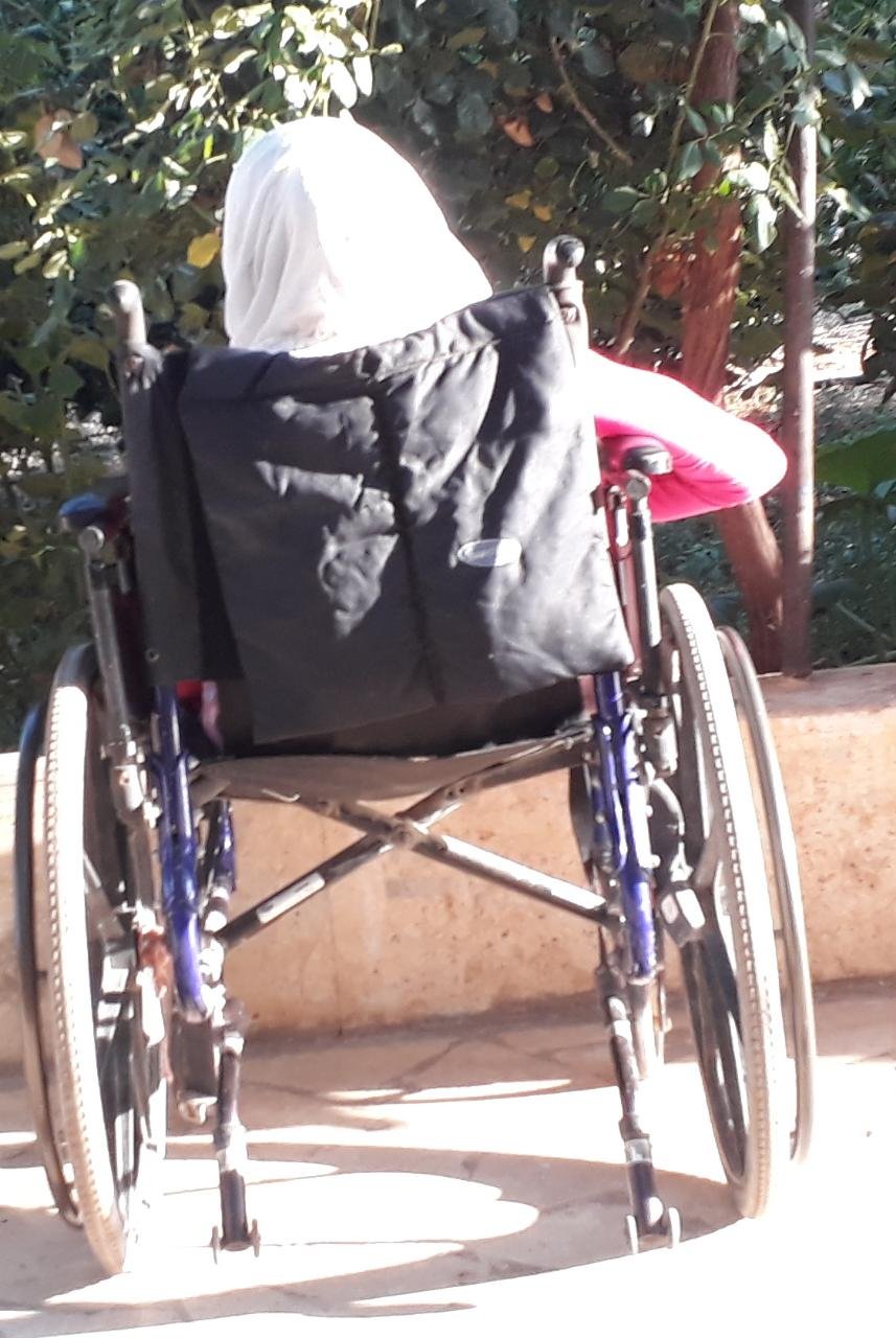 كأشعة الشمس الذهبية تناثرت خصل شعرها، على ظهرها المَحْنيِّ كظهر عجوز في أرذل العمر، برغم سنينها السبع عشرة، إلا أن ضمورا اجتاح جسدها منذ سنينها الأولى، وقوَّس عمودها الفقري، وسبَّبَ ضمورًا واضحًا بجميع عضلات الجسم، فكان سببا بعدم قدرتها على المشي،