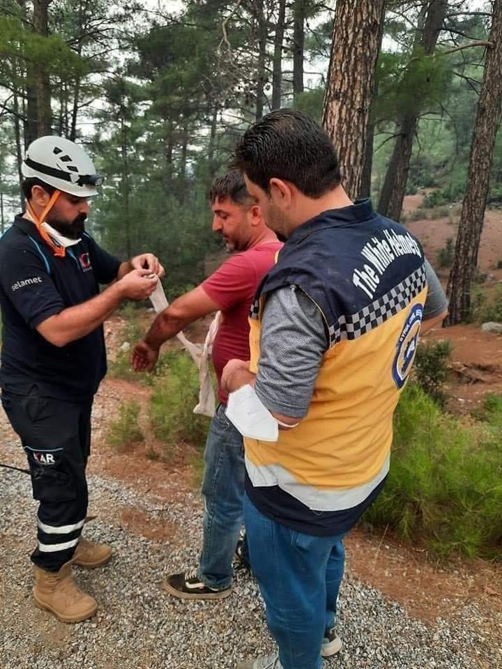 متطوعون من منظمة الخوذ البيضاء السورية شاركوا في الاستجابة لإخماد الحرائق وعمليات الإخلاء التي ضربت عدة مناطق جنوب تركيا.