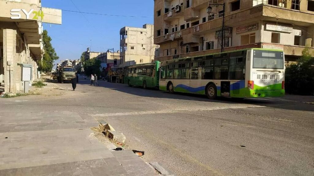 هذا بالإضافة إلى دخول عدة حافلات تهجير لنقل عدد من الشبان في درعا إلى الشمال السوري، وقال مراسل تجمع أحرار حوران أن عدد الذين يرغبون بالخروج إلى الشمال لايتجاوز خمسة عشر شاباً.