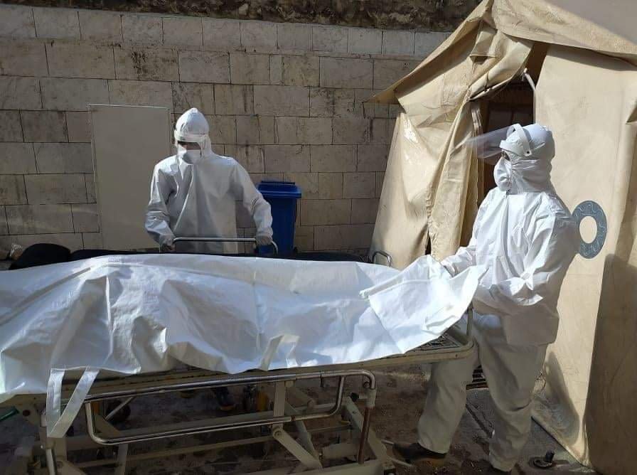نشرت منظمة الدفاع المدني السوري صوراً أظهرت قيام متطوعيها بدفن 17 وفية، قالت أنهم توفوا جراء إصابتهم بفايروس كورونا، بينهم طفل بعمر 20 يوماً و 4 نساء ضمن إجراءات احترازية عالية الدقة، كما قالت أيضاً أنها نقلت 31 مصاباً بكورونا إلى مراكز الحجر الصحي والمشافي المتخصصة.