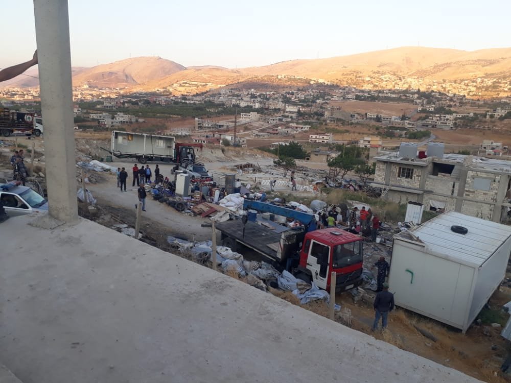 وبعد 5 سنوات من الغياب عادت دار الفتوى التي يرأسها المهندس محمد سنو وبعد إحياء الجمعية إلى إبلاغ النازحين السوريين في المخيم بالمغادرة بحجة نقل الكونتنرات إلى أرض أخرى لسرقتها وبيعها في السوق السوداء، وخاصة بعد أن أصبحت الأرض غير صالحة للسكن قبل عملية إصلاحها والتي بلغت كلفة إصلاحها 20 ألف دولار أمريكي ودون دفع مستحقات صاحب الارض من إيجار لمدة ٦ سنوات وتبين فيما بعد أنها مجرد خدعة لطرد الأهالي خارج المخيم والاستيلاء على الكونتنرات كما تبين لاحقاً.
