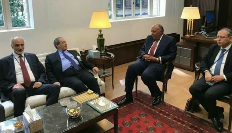 التقى وزير خارجية الأسد فيصل المقداد بنظيره المصري سامح شكري خلال زيارة جمعتهما بمقر الجمعية العمومية في نيويورك، وبحسب وسائل الإعلام فقد تباحثا في مسار العلاقات بين البلدين وطرح إعادة تدويل حكومة الأسد، وهو اللقاء الأول منذ سنوات طويلة خصوصاًأن موقف الرئيس المصري الحالي عبد الفتاح السيسي المؤيد للأسد وهو عكس موقف الرئيس الراحل محمد مرسي الذي أيد الثورة السورية بشكل علني.