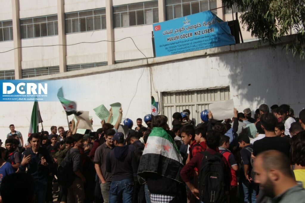 وقد بدأت صباح اليوم مظاهرات جمعت مئات من الطلاب والأساتذة في مدينة عفرين والتي طالبت الحكومة التركية والجهات المعنية بتقديم المزيد من الدعم للقطاع التعليمي، وقد أكدوا أن التعليم هو بوصلة الثورة وما يمكن أن يحل أزمات البلاد العديدة، مشيرين إلى أن الاستهتار فيه سيؤدي إلى دماره وبالتالي ضياع أجيال عديدة.