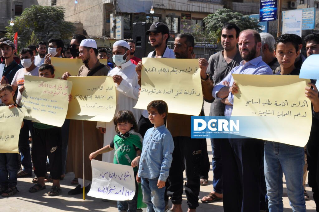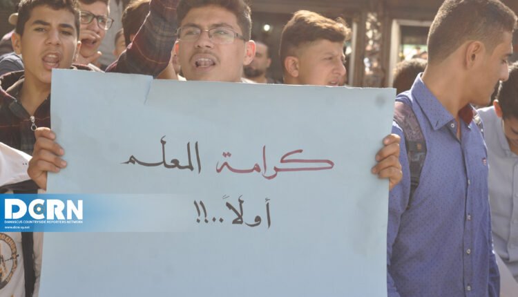 جانب من المظاهرات التي خرجت بعد صلاة الجمعة للمطالبة بتحسين الواقع التعليمي في الشمال السوري المحرر.