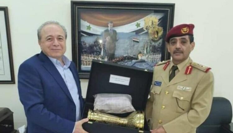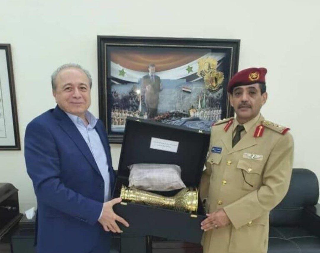 تداولت صفحات موالية صورة أظهرت رئيس شعبة الاستخبارات في وزارة دفاع حكومة الأسد اللواء الركن كفاح ملحم برفقة الملحق العسكري للسفارة اليمنية وممثل ميليشيا الحوثي في دمشق العقيد الركن شرف الماوري، حيث قالت الصفحات إن اللقاء هدف إلى إيجاد سبل للتعاون بالإضافة بحث المجريات في اليمن على كافة الأصعدة، وأشاد ملحم بأن ما أسماه الانتصارات الميدانية التي تحققها ميليشيا الحوثي في حربها ضد التنظيمات الإرهابية وأكد على أن العمل المشترك لمكافحة “الإرهاب” ملف هام للحد من الأنشطة الإرهابية في البلدين على حد تعبيره، ويشار إلى أن ميليشيا الحوثي تعد الذراع العسكري لإيران في اليمن ومسؤولة عن آلاف الانتهاكات ضد اليمنيين.
