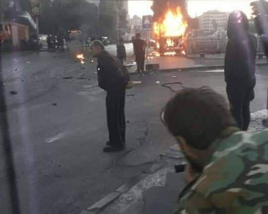 قُتل 13 جندياً من قوات النظام وجُرح عشرات آخرون جراء انفجار عبوتان ناسفتان بباص لنقل الجنود في “جسر الرئيس” المؤدي لساحة الأمويين وسط العاصمة دمشق صباح اليوم.