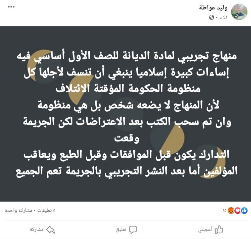وفي ذات السياق فقد تم تداول بيان نُسب للحكومة السورية المؤقتة والتي نفت فيه علمها بقضية الكتب الموزعة إذ أكدت أنها أوعزت بسحب جميع النسخ المطبوعة وقالت إنها ستشكل لجنة تحقيق لمعرفة حيثيات الموضوع