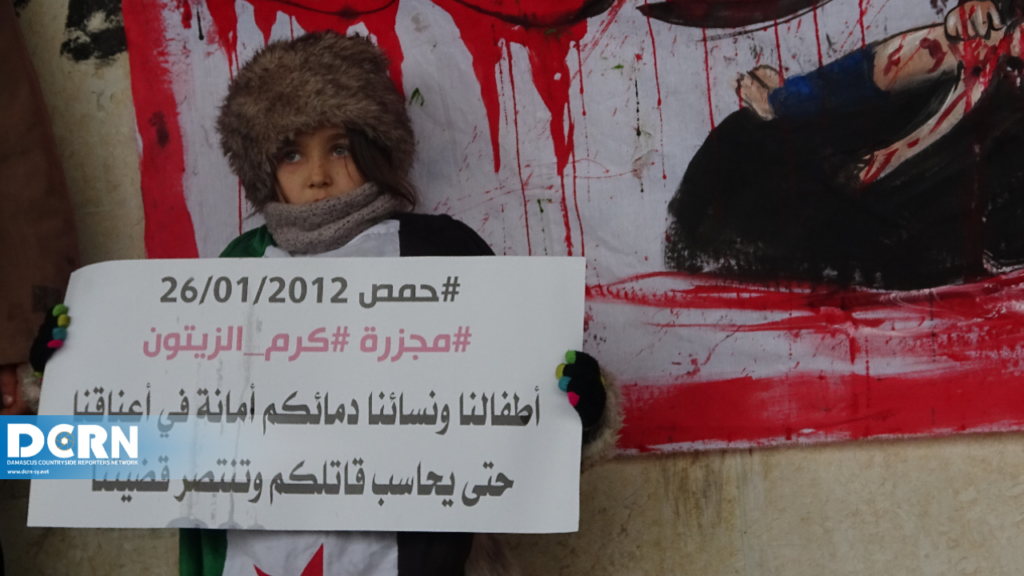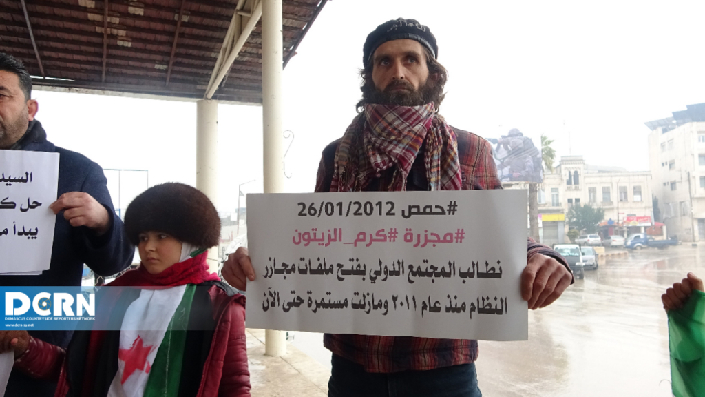 تأكيدا على الاستمرار وعدم النسيان والتخاذل وفي الذكرى العاشرة لمجزرة حي “كرم الزيتون” في محافظة حمص عام 2012 والتي استشهد فيها 19 بريئا بين رجال ونساء وأطفال ارتقوا ذبحا بالسكاكين ورميا بالرصاص نظّم ناشطون وقفة بعنوان “دماء منسية”.