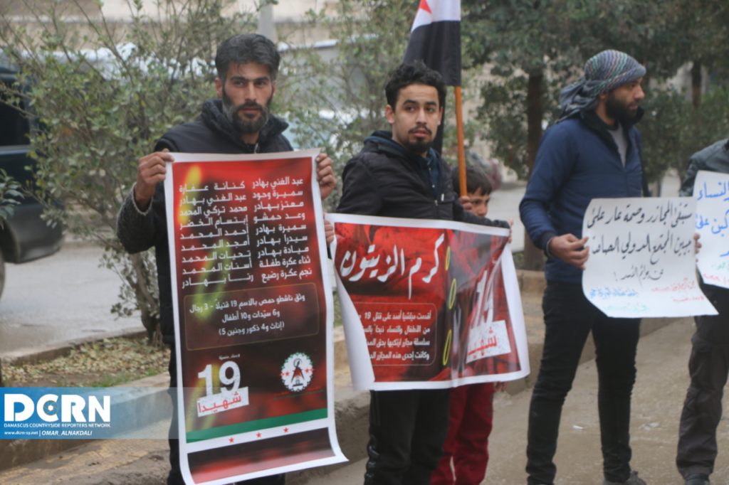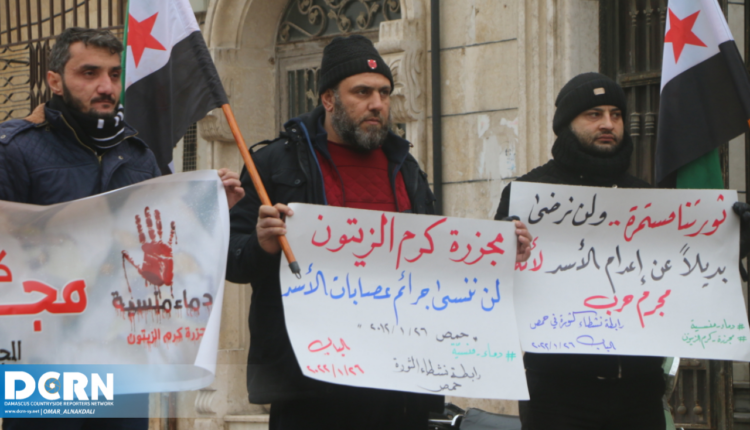 وقفة نظمها عدد من الناشطون في مدينة الباب بعنوان “دماء منسية” لإحياء الذكرى العاشرة لمجزرة “كرم الزيتون” في محافظة حمص عام 2012،والتي ارتقى فيها 19 شهيداً، حيث قضوا ذبحاً ورمياً بالرصاص.