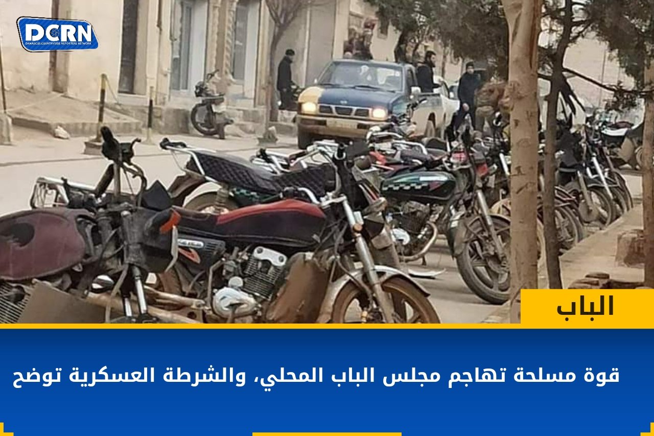 قام عدد من الأفراد تابعين لغرفة “عزم” باقتحام المجلس المحلي لمدينة الباب واحتجاز عدد من الموظفين وإطلاق النار في الهواء، وبحسب بيان الشرطة العسكرية الذي أصدرته عقب فض المشكلة تبين أن الأفراد الذين قاموا بالهجوم هم ذوو الطفلة “جنى محمد طلاس” التي توفيت بسبب البرد حيث طلبت عائلتها أن تحصل على بعض مواد التدفئة من المجلس المحلي دون استجابة وعقب وفاتها قام ذووها بمهاجمة مبنى المجلس ودائرة النفوس، وأكدت الشرطة العسكرية في بيانها أن العمل فردي بحت وتم تسليم الأفراد المهاجمين ليتم تحويلهم للقضاء أصولاً.