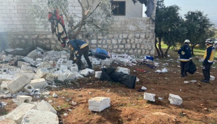 وقد اندفعت فرق الإسعاف في منظمة الدفاع المدني السوري للمكان المستهدف حيث وجدت المبنى مدمراً وأعلنت عن ارتقاء 13 شهيدا بينهم 6 أطفال وأربعة نساء واستمرت بعمليات التفقد والبحث حتى الصباح.