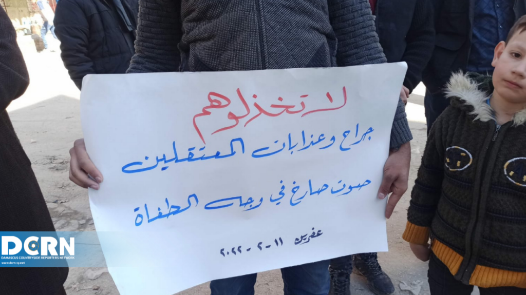 جانب من المظاهرات التي خرجت في مدينة عفرين اليوم والتي حملت شعار “الحرية للمعتقلين” في سجون قوات نظام الأسدصورة&تعليق آخر تحديث فبراير 11, 2022 207 شارك شبكة مراسلي ريف دمشقصورة وتعليقمظاهراتمعتقليننظام الأسد 207 شارك