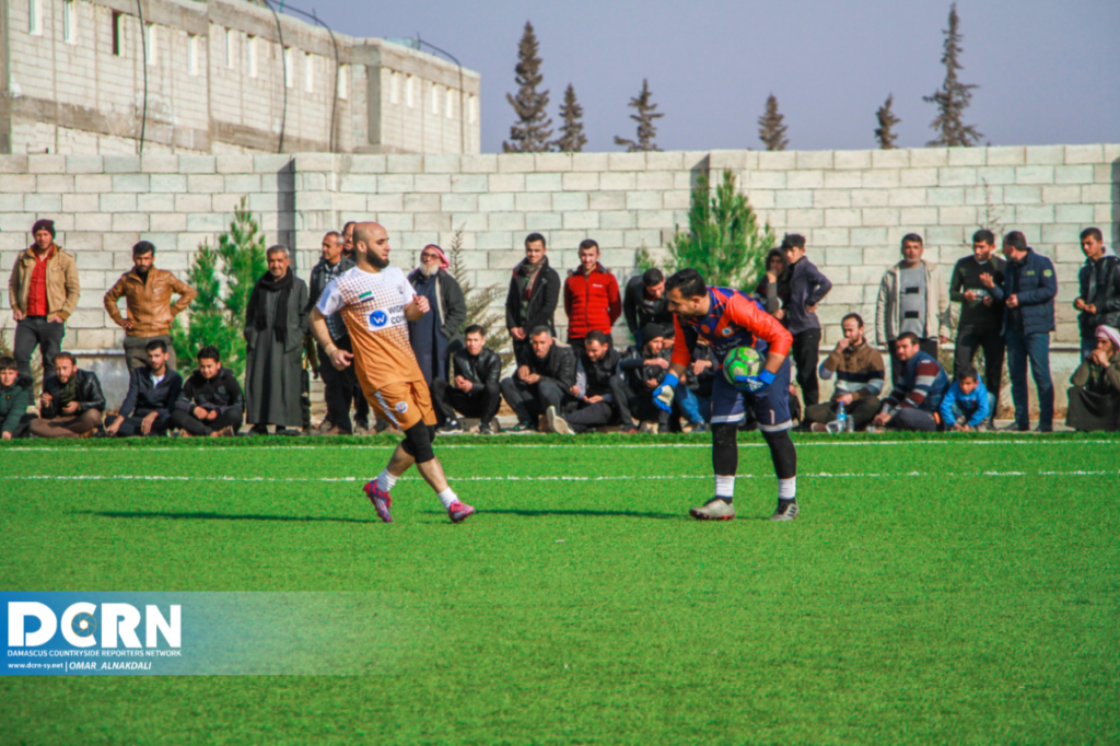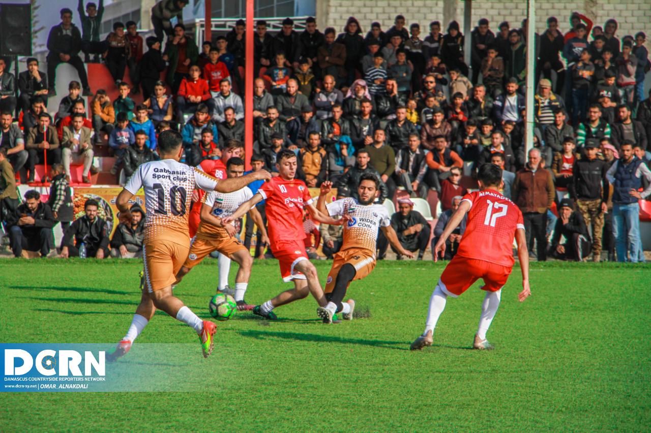 جانب من مباراة بلعبة كرة القدم في مدينةقباسين بين نادي المدينة ونادي الميادين وانتهت بفوز نادي قباسين بنتيجة هدفين مقابل لا شيء
