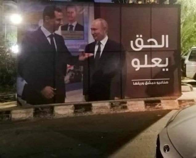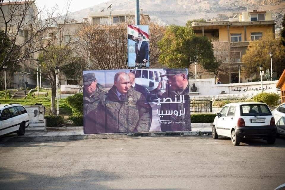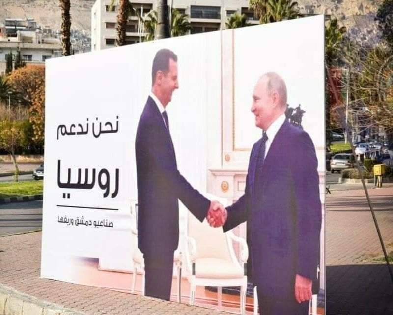 انتشار العديد من اللافتات الطرقية التي تدعم الغزو الروسي لأوكرانيا في العاصمة دمشق والتي رعتها “غرفة صناعة دمشق وريفها” التابعة لنظام الأسد