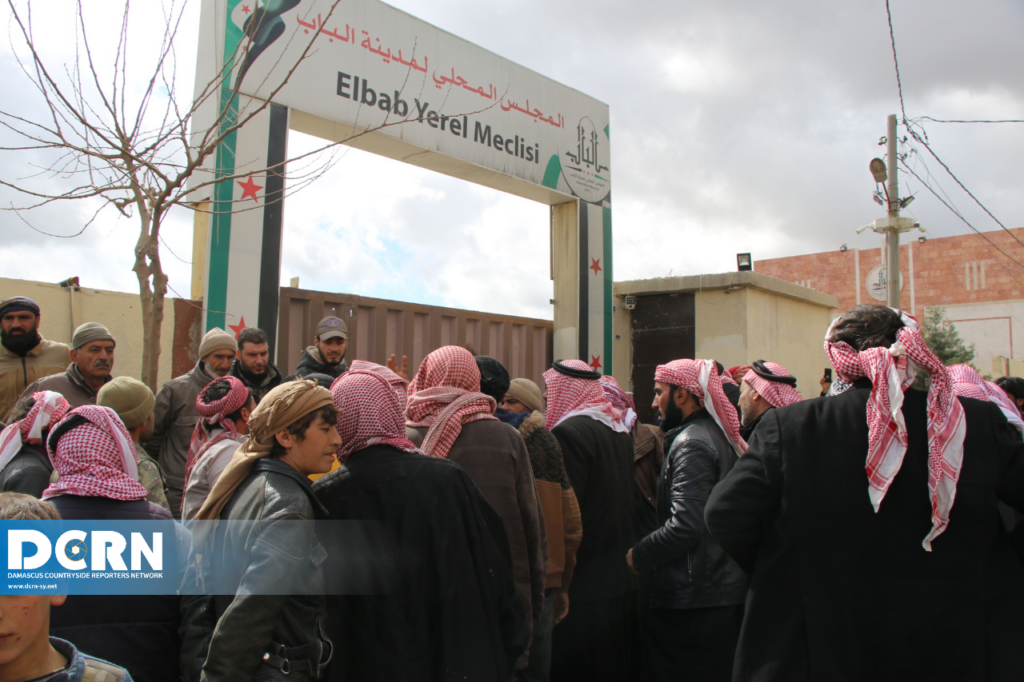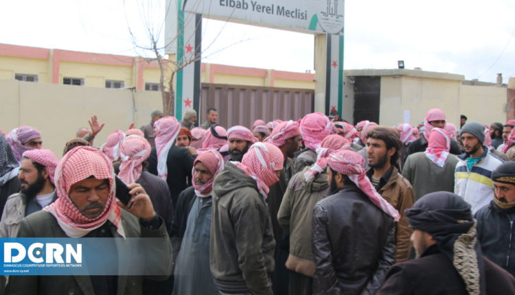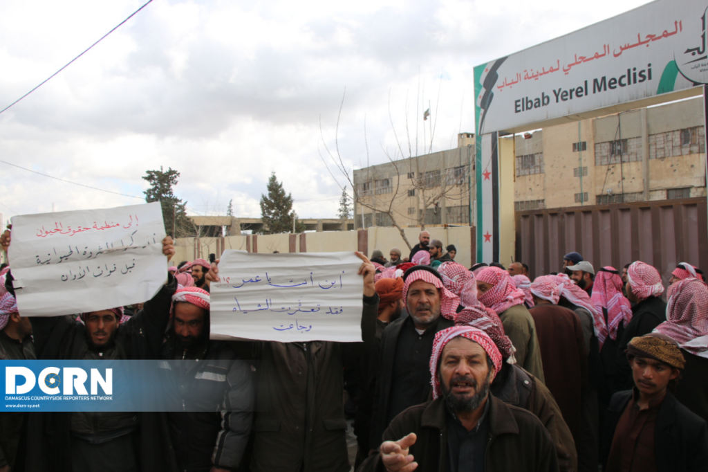 وقفة احتجاجية أمام المجلس المحلي لمدينة الباب لمربي الأغنام احتجاجاً على رفع أسعار الأعلاف والأدوية الخاصة الاغنام والماعز