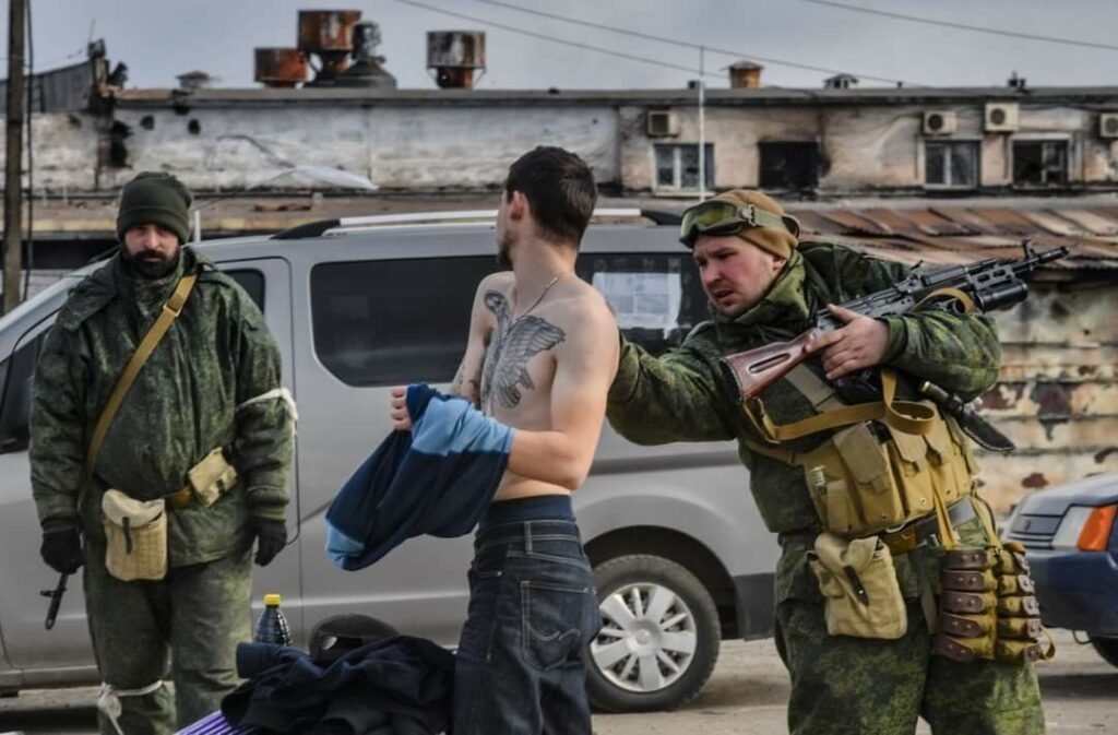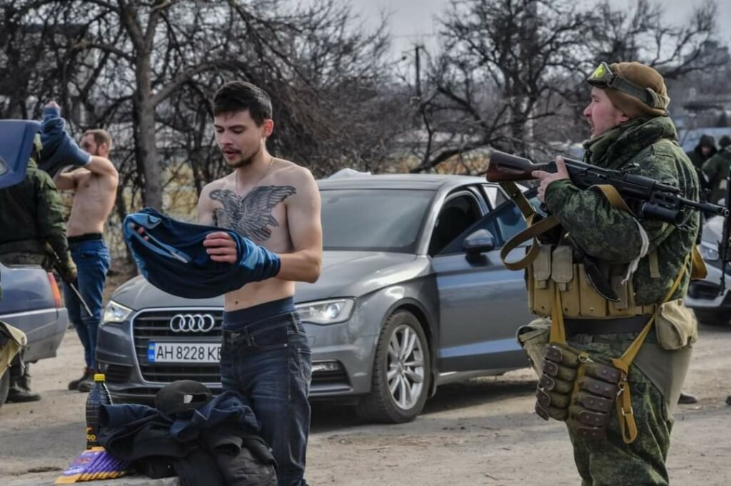 تداولت صفحات التواصل الاجتماعي صوراً للقوات الروسية التي تقوم بتفتيش المدنيين الهاربين من مدينة ماريوبول، حيث تجبرهم على خلع ثيابهم بحثاً عن وشم يدل على انتمائهم لكتيبة “آزوف” ذات التوجه اليميني المتطرف وفق ما تدعي روسيا والتي تصفهم بـ”النازيين الجدد”.