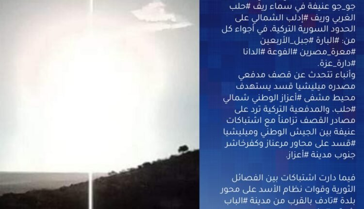 وأنباء تتحدث عن قصف مدفعي مصدره ميليشيا قسد استهدف محيط مشفى #أعزاز الوطني شمالي #حلب، والمدفعية التركية ترد على مصادر القصف تزامناً مع اشتباكات عنيفة بين الجيش الوطني وميليشيا #قسد على محاور مرعناز وكفرخاشر جنوب مدينة #أعزاز.