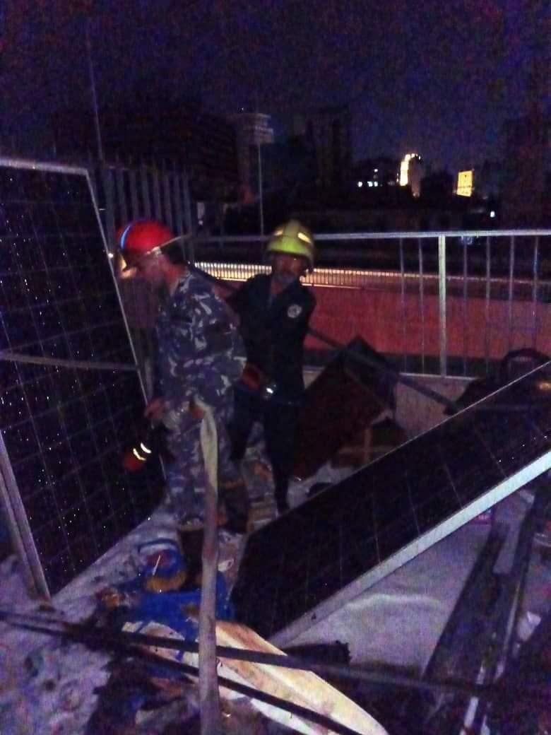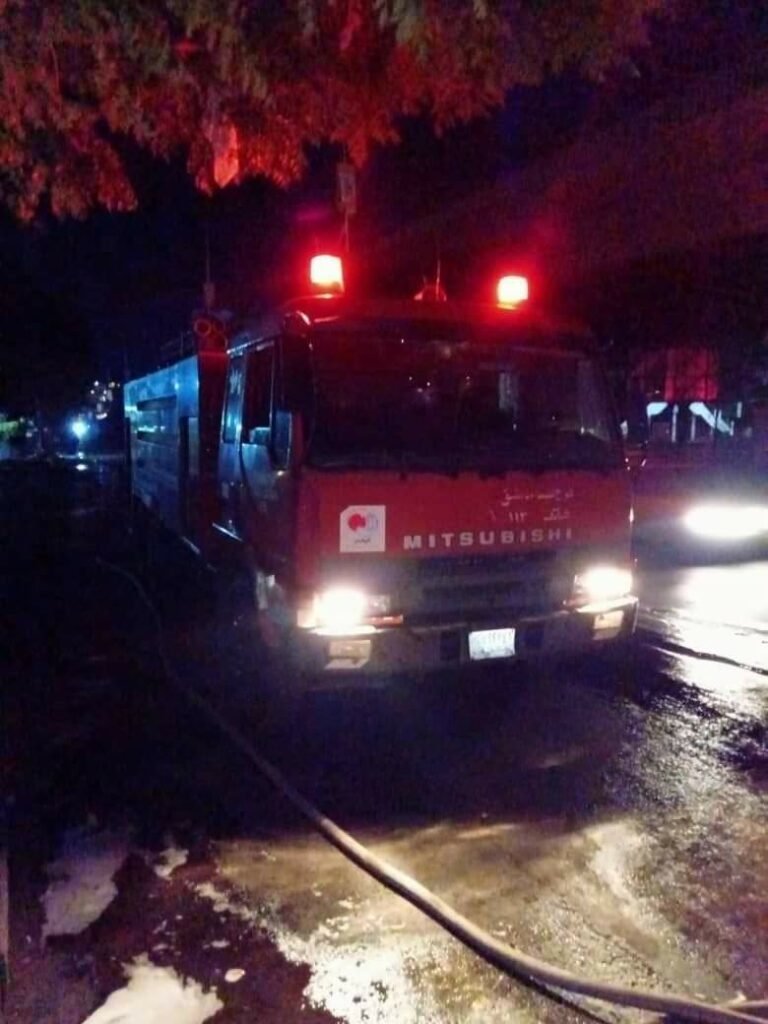 إخماد حريق اندلع في غرفة أحد الفنادق بشارع الثورة الليلة الماضية في العاصمة دمشق والتي كانت تحتوي على بطاريات وألواح للطاقة الشمسية