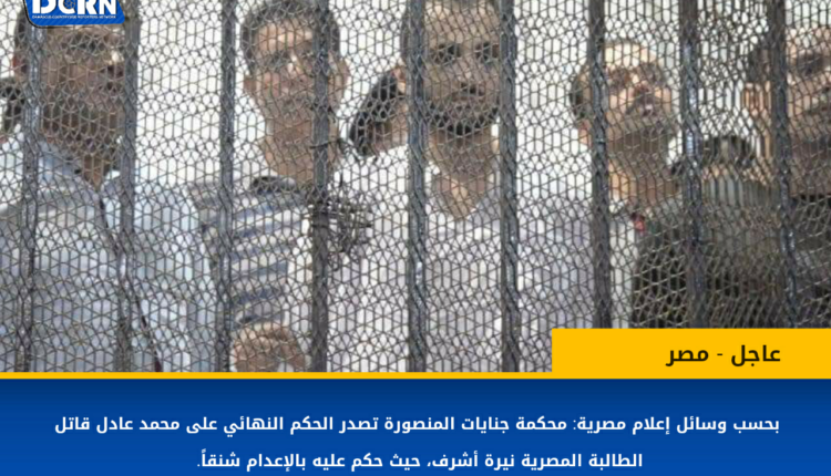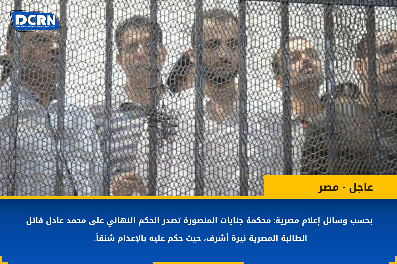 بحسب وسائل إعلام مصرية: محكمة جنايات المنصورة تصدر الحكم النهائي على محمد عادل قاتل الطالبة المصرية نيرة أشرف، حيث حكم عليه بالإعدام شنقاً.صورة&تعليق آخر تحديث يوليو 6, 2022 206 شارك صورة وتعليققضاءمحكمةمصرنيرة أشرف 206 شارك