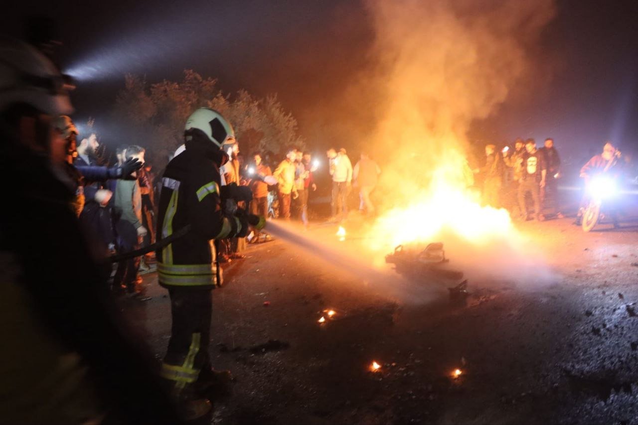شنت طائرة مسيرة مساء اليوم هجوماً استهدف شخصين كانا على متن دراجة نارية كانا يستقلانها على الطريق الواصل بين بلدتي قاح ودير حسان، حيث أعلن الدفاع المدني السوري عن مقتل شخصين وانتشال جثتيهما وإخماد الحريق الناتج عن الغارة.