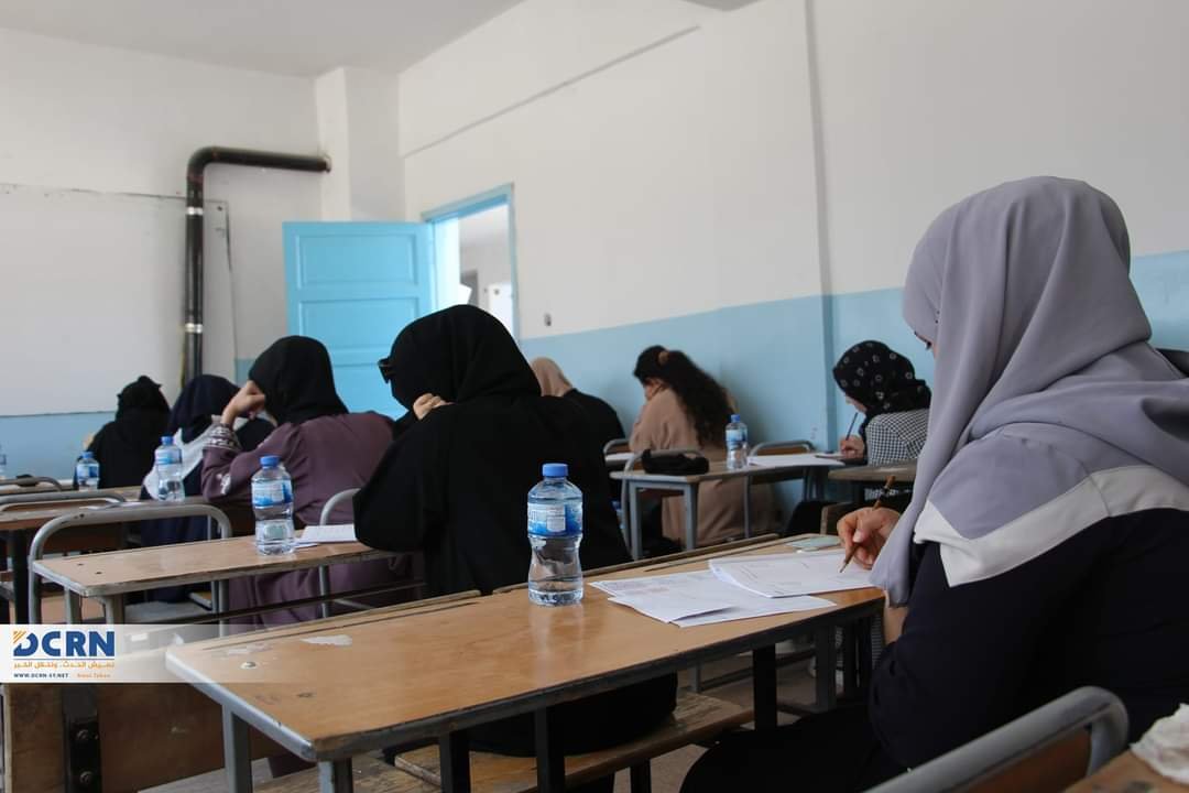 جانب من سير العملية الامتحانية في يومها الثالث والأخير لطلاب الشهادة الثانوية التابعة للمجالس المحلية في مدرسة ‘خلوصي كوجر’ في مدينة عفرين.