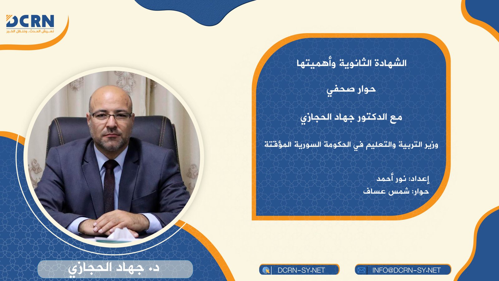 حوار صحفي مع الدكتور جهاد الحجازي وزير التربية والتعليم في الحكومة السورية المؤقتة